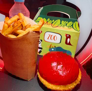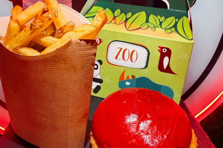 Pan potato rojo, vacuno smash 90g/pollo cornflakes, patatas y agua